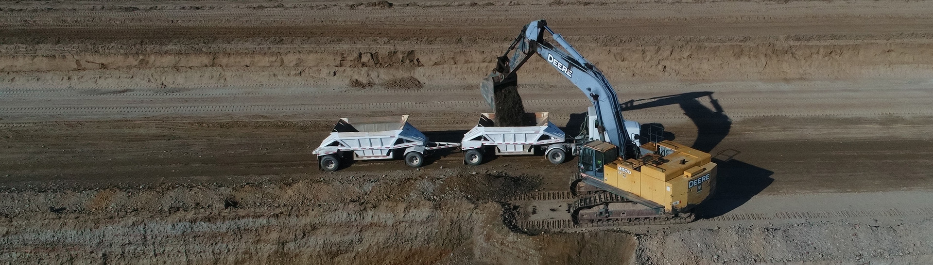 The hard rock beneath the sand and gravel base is fractured through controlled blasting before being loaded into trucks for transport to the processing plant.